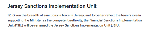 - THE FINANCIAL SANCTIONS IMPLEMENTATION UNIT (FSIU) will be renamed THE JERSEY SANCTIONS IMPLEMENTATION UNIT (JSIU).