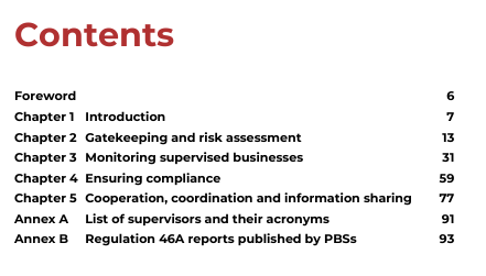 - Chapter 3 details each supervisor's risk-based approach to monitoring compliance with the MLRs by their population using various methods such as desk-based reviews, onsite visits, and other supervisory interventions.