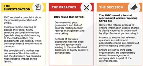 2. CYPES was issued with a formal Reprimand together with Orders to improve its compliance with the DPJL 2018.