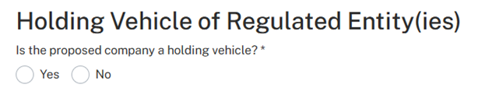 - This includes a section for ‘Holding Vehicle of a Regulated Entity’: