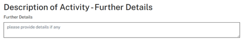 - There is no change to the information requested, and it remains on the Sensitive Activity page under ‘Registered, Authorised and Supervised Activities’: