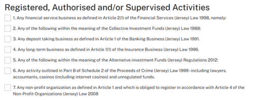 - A new Section has been added to the form called ‘SBP – Activities that pose a potential risk to the reputation of the Island’: