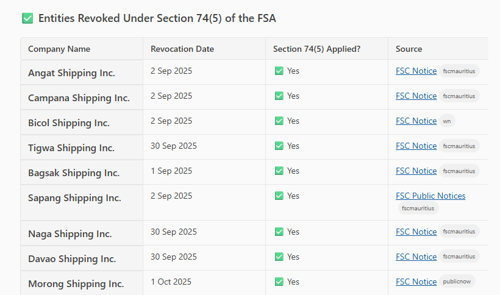 - Angat Shipping Incorporated – Revoked on 2 September 2025 https://www.fscmauritius.org/media/201771/notice-for-publication_angat.pdf