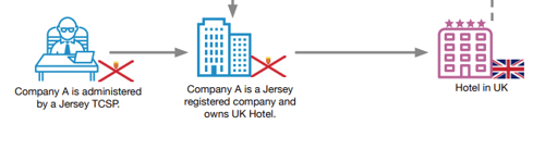 - A Jersey-regulated Trust Company Services Provider (TCSP) provides administration services for a Jersey-registered company, Company A, which in turn owns a hotel in the UK.