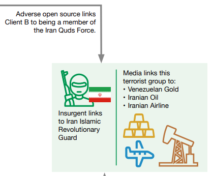 - That Client B WAS linked as a secret operative of a sanctioned IRGC and responsible for smuggling supplies and logistics, particularly military equipment, to Iran's proxies in Syria and Lebanon.