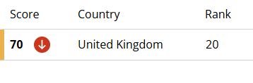 - The global average score has fallen to just 42, marking the first significant global decline in more than a decade.