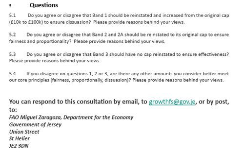 - You can respond to this consultation by email to growthfs@gov.je, or by post, to: