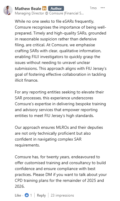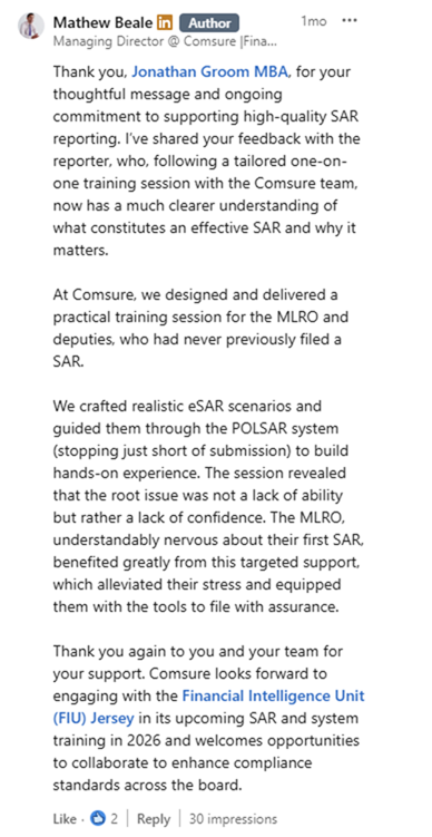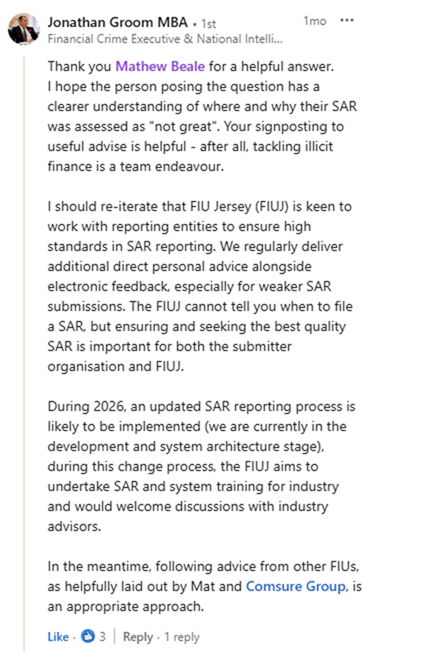 This ASK MAT article discusses a real scenario where someone submitted a Suspicious Activity Report (SAR) to the Jersey Financial Intelligence Unit (JFIU) and received feedback that was less than ideal.