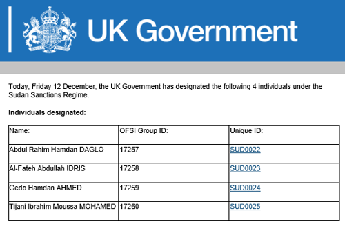 UK Sanctions – Sudan RSF Commanders (December 12, 2025)