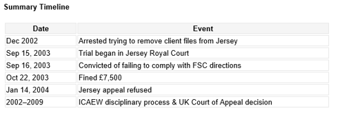 - ICAEW disciplinary action: Following the Jersey conviction, the Institute of Chartered Accountants in England and Wales (ICAEW) initiated disciplinary proceedings. Their initial complaint (Conviction Complaint) alleged discreditable conduct based on the Jersey conviction. Still, it was dismissed on the basis that the offence didn’t correspond to an indictable offence in England and Wales. [lexology.com]