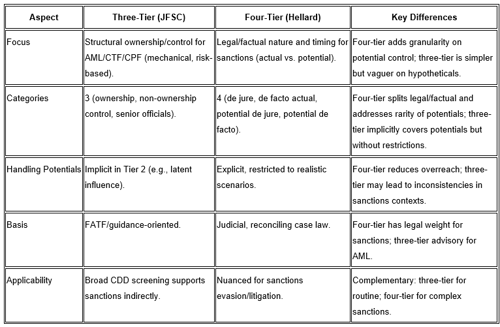 - While the current guidance is sufficient for core AML/CTF/CPF and upcoming enhancements strengthen it, the four-tier judicial precision better addresses hypothetical and de facto control in sanctions contexts, reducing overreach and enhancing evasion detection.