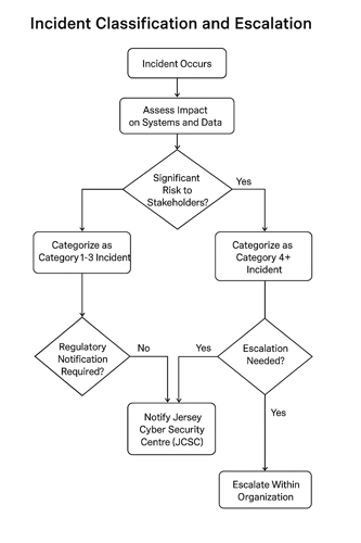 - Align classification with regulatory reporting (e.g., JOIC for data breaches, JFSC for operational disruptions).