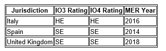 - Given the strict criteria (particularly for IO4, where 98% of evaluated jurisdictions achieve only low or moderate effectiveness), only a small number qualify based on their FATF mutual evaluation results. Below is a table of examples with their IO3 and IO4 ratings: