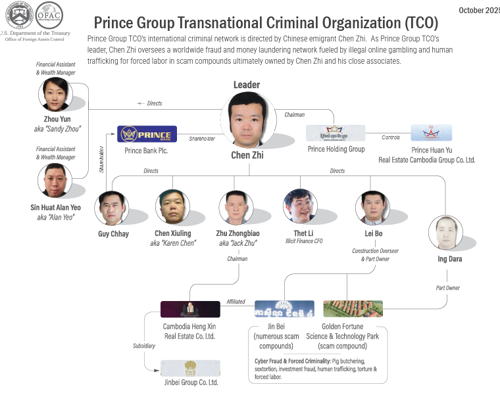 - The Prince Group was found to be operating a global online investment scam empire targeting American and international victims.