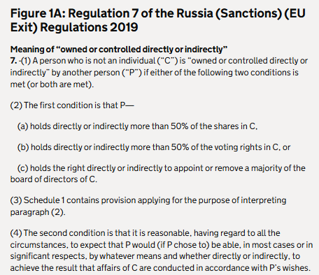 - Regulation 7 of the Russia (Sanctions) (EU Exit) Regulations 2019 - states