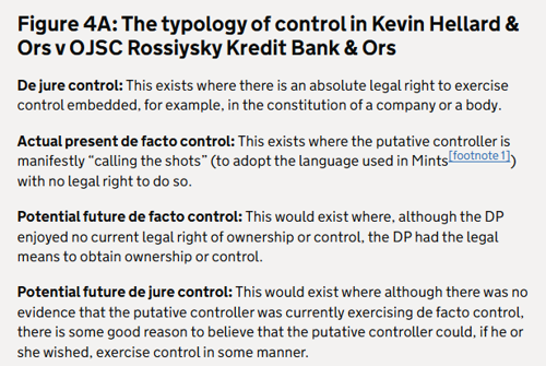 - The typology of control in Kevin Hellard & Ors v OJSC Rossiysky Kredit Bank & Ors [See below Figure 4A: The typology of control]