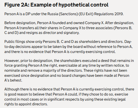 - Person A is a DP under the Russia (Sanctions) (EU Exit) Regulations 2019.