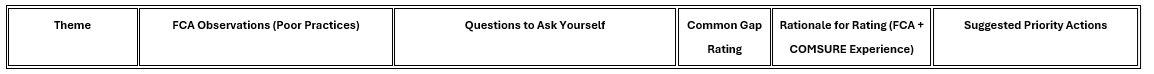 Below is an FSA key observations Gap Analysis and self-assessment questions. These are not firm-specific assessments; they reflect patterns we (and the FCA) see repeatedly.