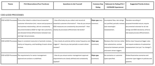 - https://www.fca.org.uk/publications/good-and-poor-practice/firms-customer-due-diligence-processes-and-controls-our-findings (Published 08/04/2026 – this is the definitive source referenced in the gap analysis template you provided.)