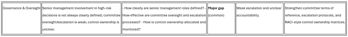 - Strengthen governance (approval matrices, escalation, senior management reporting).