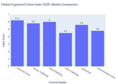 - "In terms of global pervasiveness, financial crimes remain the most prevalent criminal market in 2025, with a score of 6.21.