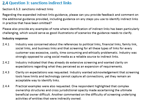 - Update sanctions screening tools to include ownership/control logic.