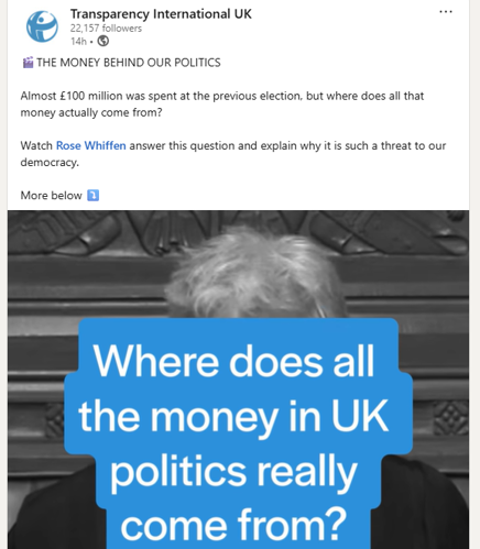 - Original LinkedIn post/video share: https://www.linkedin.com/posts/transparencyuk_the-money-behind-our-politics-almost-activity-7437914990516539392-jsun