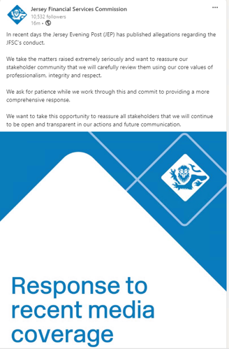 - In recent days the Jersey Evening Post (JEP) has published allegations regarding the JFSC’s conduct.