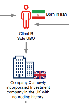 - Checks on Companies House in the UK revealed that Client B was linked to a number of recently incorporated companies, of which he was the sole director, most of which had slight misspellings of his name; the FIU assess that this was done intentionally to obscure his identity.