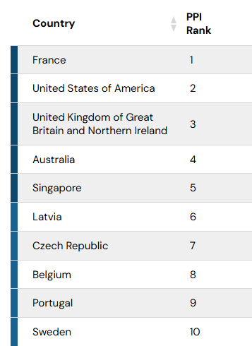 - The PPI ranks about 200 countries and territories using over 100 indicators across five key areas: